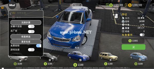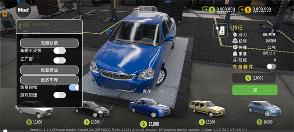 中文辅助菜单:汉化版内置实用功能,无限绿币、车辆无损、免费购车、燃油恢复等,畅玩体验全面升级。
