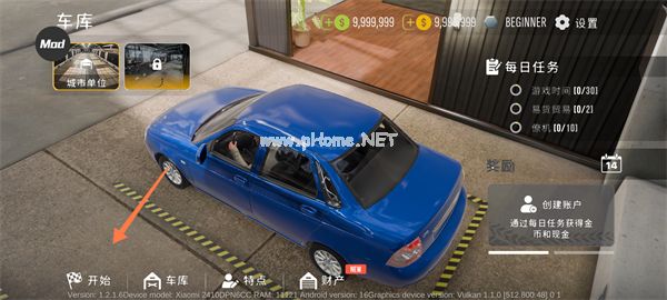 2、完成车辆购买后,点击【开始】按钮并选择游戏模式。
