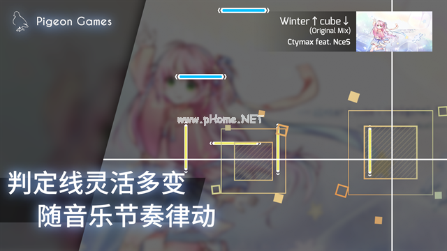 新颖无轨玩法:由4种音符组成自由谱面,搭配灵活多变的判定线,打破传统音游轨道束缚,游玩过程中带来极强的动作感与爽快感,卡点体验拉满;